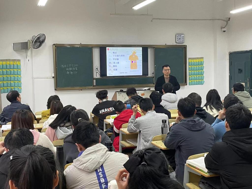 公共卫生与管理公司牵头人李晓东及副牵头人邓小英来到1号教学楼204教室听取刘根林老师为21保险学班讲授的《解剖生理学》,课前,牵头人李晓东及副牵头人邓小英与同学们亲切交谈,询问大家的专业学习情况。课后,对刘根林老师认真的教学态度、饱满的工作热情和良好的教学水平给予了肯定,同时对改进课堂教学、提高教学质量进行了交流探讨。