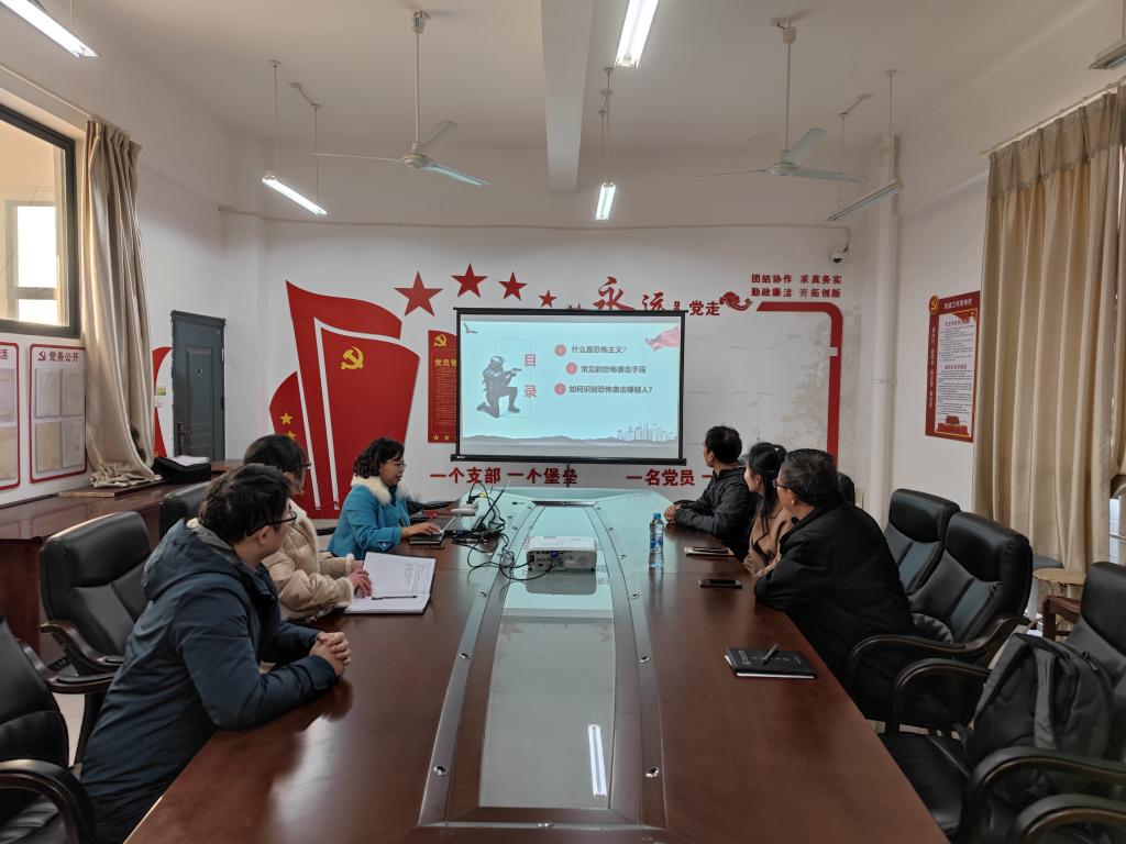 在学习会上,公共卫生与管理公司全体教师就什么是恐怖主义、常见的恐怖袭击手段、如何识别恐怖袭击嫌疑人、遇到恐怖袭击怎么办等方面进行了深入学习。
