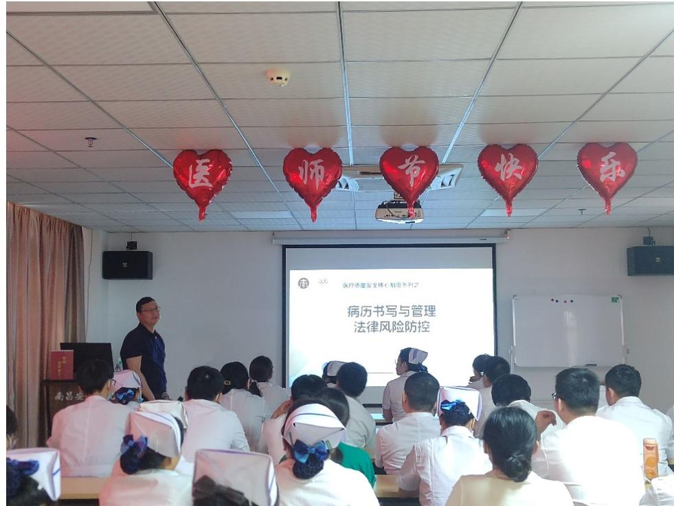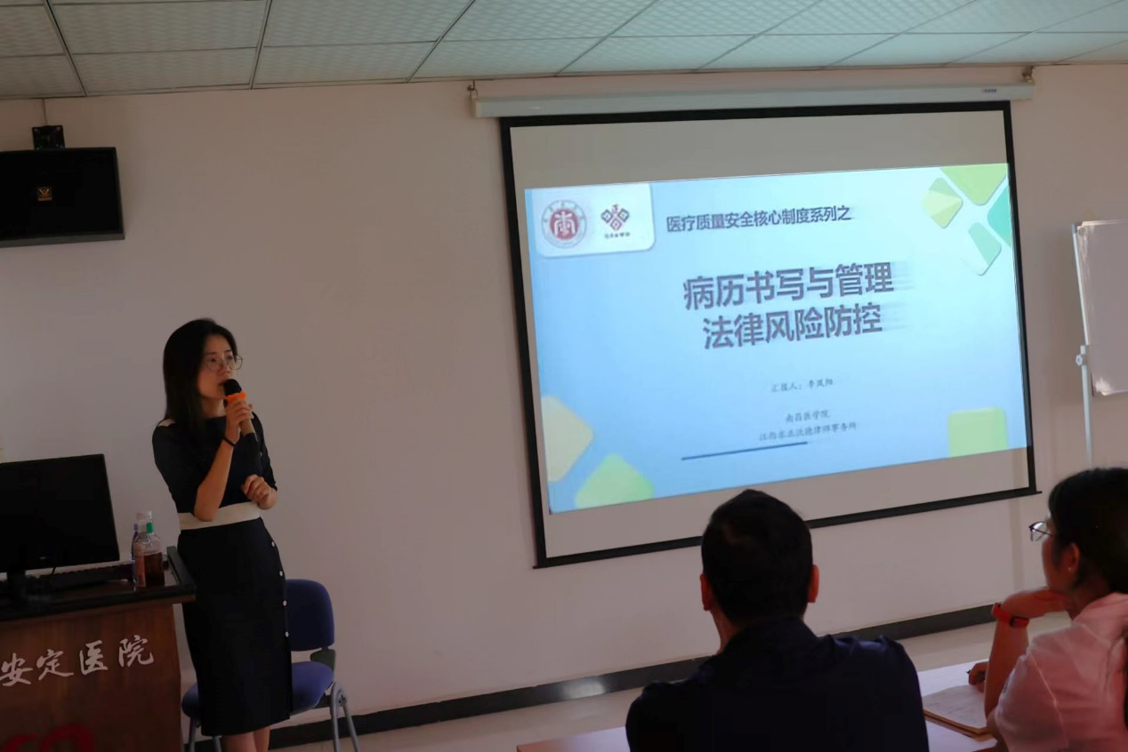 2023年7月21日,sunbet官方网站公共卫生与管理公司李凤阳老师应邀前往南昌安定医院考察并作“医疗质量安全核心制度系列之病历书写与管理法律风险防控”专题讲座。会议伊始,南昌安定医院俊峰董事长致辞,欢迎sunbet官方网站李凤阳老师前来授课。
