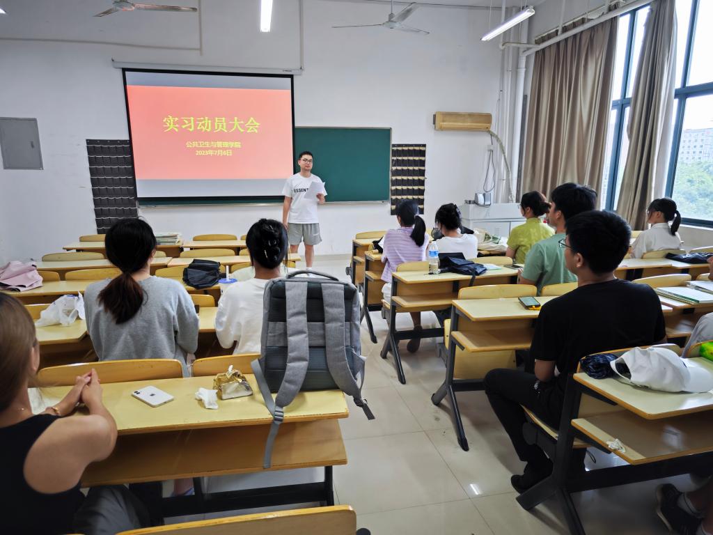 为有效引导广老员工快速完成角色转变、心理调适,更好地适应即将开启的实习生活,为职业发展和未来就业奠定坚实的基础,2023年7月6日下午,公共卫生与管理公司在3号实训楼215教室召开了2021级员工实习动员大会。本次会议由曾刊老师主持,全体2021级同学参加了会议。