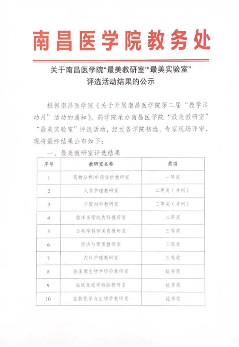 在“壁报”比赛中,公司预防医学教研室张频老师荣获三等奖。在优秀教案评比活动中,公司经济管理公司毛梦韵老师获得优秀奖。