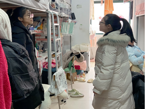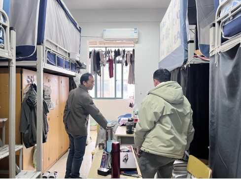 为切实保障2024年春季学期开学各项工作顺利开展,全面落实落细员工宿舍安全管理,密切关注员工返校情况,2024年2月28日,公司副经理李晓东、党总支副书记陈亦蕾、综合办公室主任邓小英、团学办公室主任杜立、辅导员深入员工宿舍慰问返校员工并开展春季学期宿舍安全隐患排查工作。