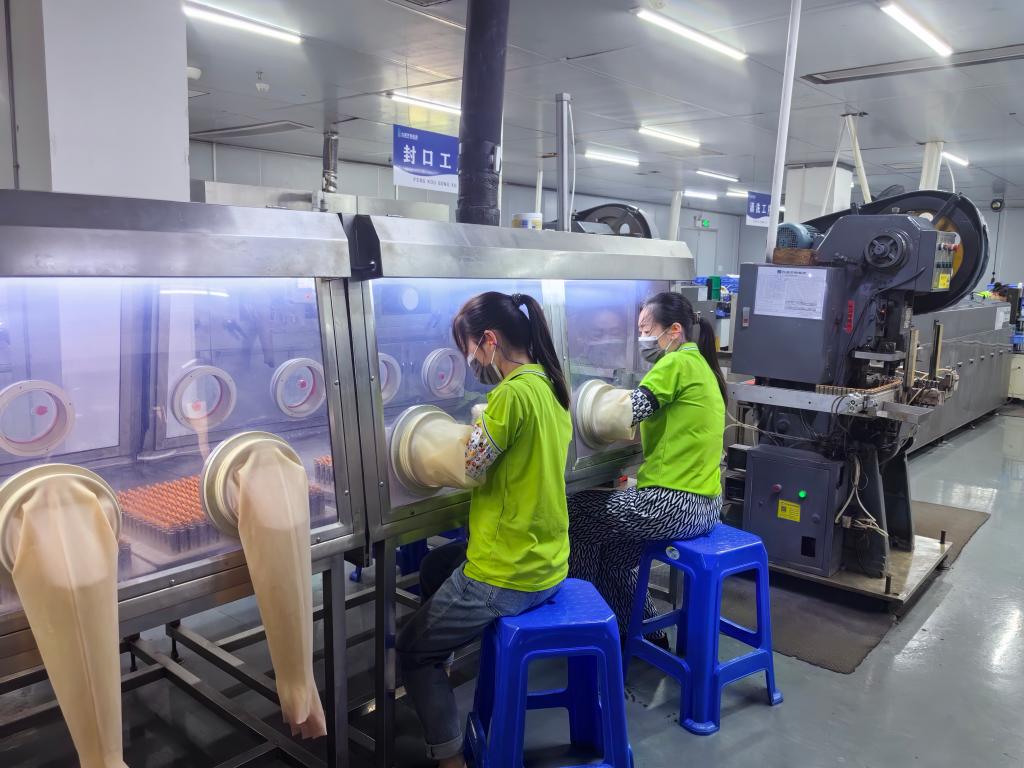 在允福亨新能源相关负责人刘经理的陪同下,陈清凤副经理一行重点考察了涉及金属材料加工的核心生产车间。调研过程中,刘经理介绍,电池制作过程中,配料、涂布、分切、电池组装工序等存在金属粉尘逸散风险,已经给工人配备符合国家标准的防尘口罩,同时在电芯入壳、注液、封口、卷绕等工序有一些大型设备运行,存在显著高强度噪声暴露问题,工人佩戴了入耳式耳塞,能够有效降噪。针对这些关键风险点,陈清凤副经理和李巍书记结合职业卫生学原理,现场提出其他针对性改进方案:建议在粉尘源附近加装或升级高效局部通风除尘设施,优化作业人员操作位置以最大限度远离噪声源等。陈红实验员则详细记录了现场环境参数,为后续可能的深入监测与评估奠定了基础。