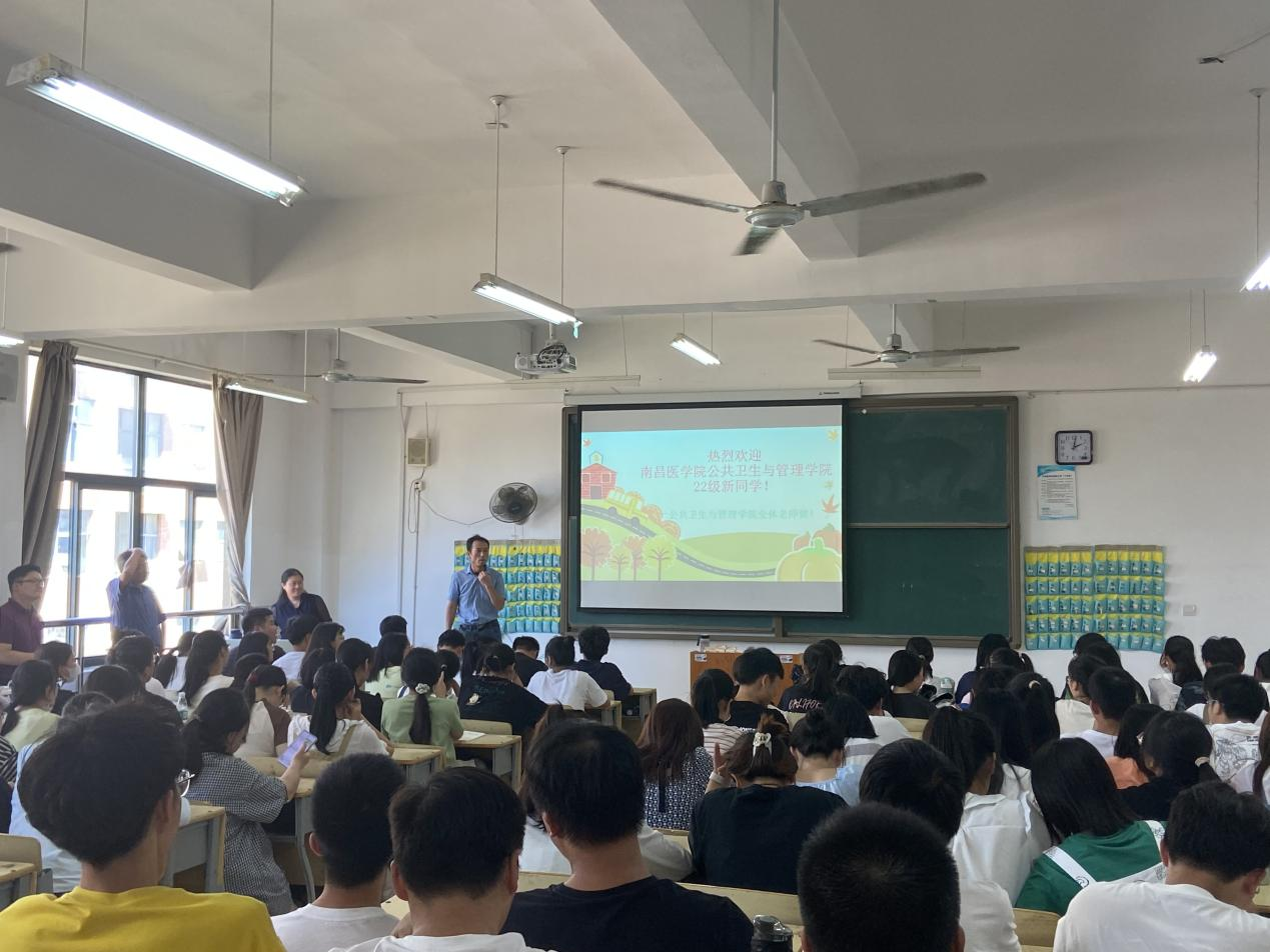 李晓东主持发言,致欢迎词。他代表公共卫生与管理公司对2022级全体同学的到来表示热烈的欢迎和热切的期待。他从建校规划、专业设置、团队建设、教师团队等多方面为同学们介绍了公共卫生与管理公司的基本概况,他指出,专业发展顺应了时代发展的趋势,专业发展与勇于承担社会责任结合发展,才是成为新时代“新传人”的必由之路。