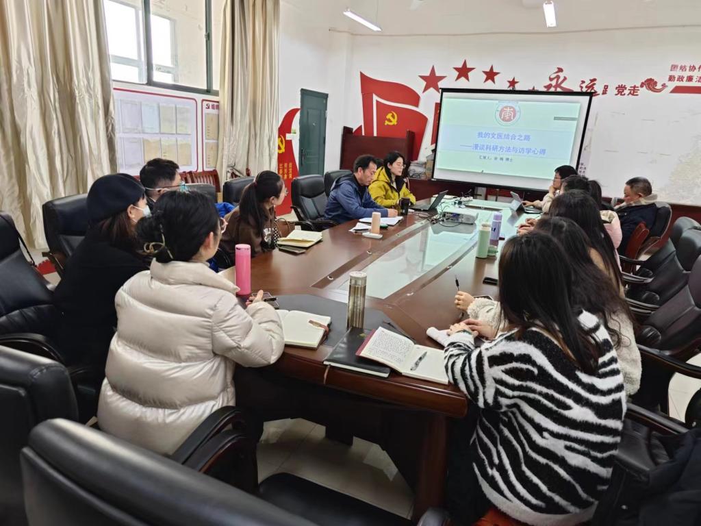 会议邀请了公共学科教学部宋梅博士和孙琪梦博士同我们分享她们的教学科研心路历程。宋梅博士同我们分享了她从本硕英语专业,到中医文化学博士的求学之路,谈到兴趣是最好的老师,扎实的理论基础,丰富的田野资料是文科专业的科研基石,文科论文也可以参照理工科论文逻辑构架,构建理论话语。孙琪梦博士则向我们分享了她在各种教学比赛中的收获,鼓励大家多多参加教学比赛,多多发言,锻炼自己的思维,同时强调积累是教学和科研的过程,成功需要沉淀,厚积薄发,不积跬步无以至千里,不积小流无以成江海。两位博士都讲到X+医学,科研不拘泥于某个专业,可以实现专业交叉融合,引起更多共振。李晓东副经理也以“问题导向 与时俱进 团队同心同向”为题,分享了在科研路上的体会与思考。
