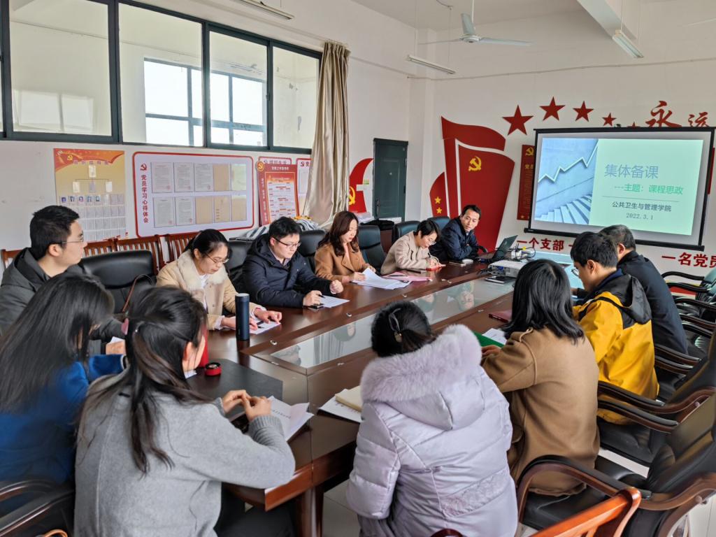 为了充分发挥教师的集体智慧,打造高效课堂,提高教学效率,共同探讨课程思政,促进教学质量的全面提高。2022年3月1日下午,公共卫生与管理公司在5号实训楼601开展集体备课活动。此次集体备课活动由公共卫生与管理公司主任李晓东主持,公司全体专任教师、兼任教师胡晓玲、李琴、刘和俊、胡晓玲、廖琪及办学质量管理办公室廖惠兰老师参与了此次活动。