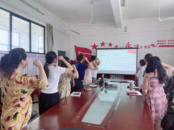 不忘初心,方得始终。教工支部书记邓小英、员工支部书记周文倩分别为支部党员上了一堂精彩的党课并带领大家重温了入党誓词,“我志愿加入中国共产党,拥护党的纲领,遵守党的章程,履行党员义务,执行党的决定……”全体党员重温入党誓词时的庄严承诺和坚定决心,铮铮誓言久久回荡,让每一位党员热血沸腾,心潮澎湃,在党旗下接受心灵的净化和洗礼。